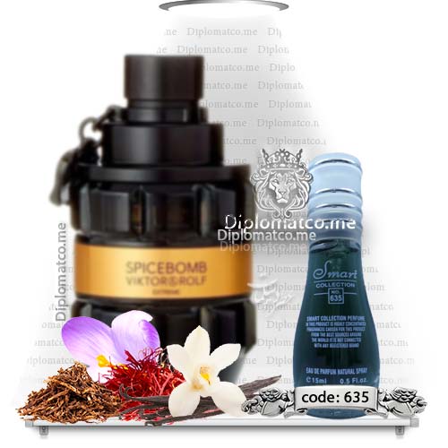ادکلن ویکتور اند رولف اسپایس بمب اکستریم اسمارت مردانه Spicebomb Extreme از گروه بویایی عطرهای شرقی ادویه ای پس از ادکلن مردانه اسپایس بمب با همکاری ژان کریستف هرو و کارلوس بنیم به صورتی قوی تر از نمونه قبلی ارائه شد. عطر اسپایس بمب اکستریم دارای رایحه ای جذب کننده و مناسب مردان جسور، تاثیرگزار و پرانرژیست. ادکلن اسپایس بمب اکستریم اسمارت کالکشن کد 635 در حجم 15 میل با کیفیت مناسب به بازتولید رسیده است. ادوپرفیوم اسپایس بمب اکستریم حال و هوایی عمیق، گرم، کمی تند و کمی شیرین در فصول بهار، پاییز و زمستان برای میهمانی و قرار ملاقات های رسمی بهترین عملکرد را داراست.
